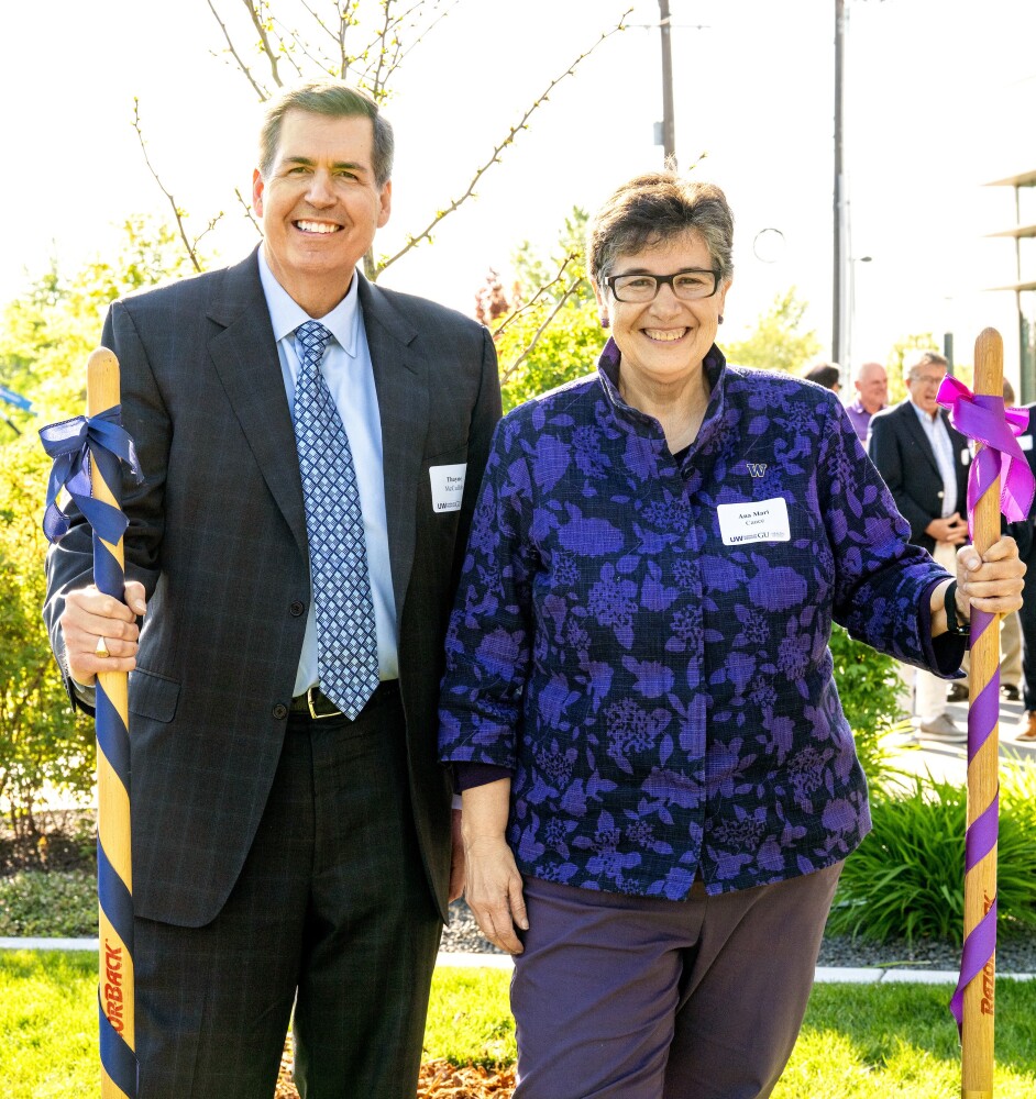 Photo: Thayne McCulloh and Ana Mari Cauce at the UW-GU Health Partnership Building grand opening in 2022, photo courtesy Gonzaga University