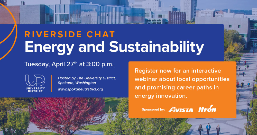 Welcome to the kick-off Riverside Chat series designed to bring students and business executives together to discuss industry innovations and career opportunities. Hosted by the University District, the first interactive event on Tuesday, April 27 from 3:00 PM – 4:00 PM features two, nationally-recognized leaders in Energy and Sustainability: Rich Christensen with Itron and Heather Rosentrater with Avista.