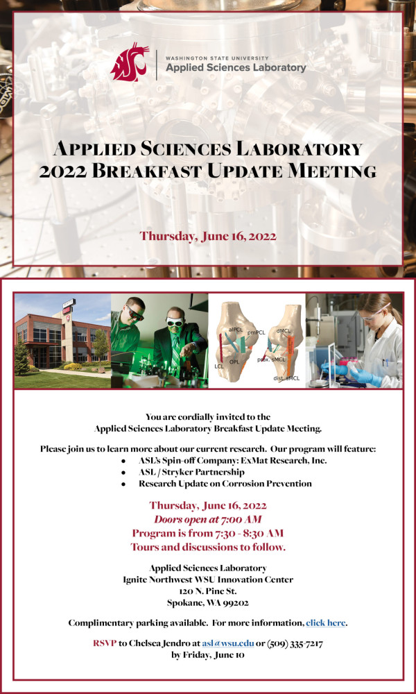 You're Invited - WSU's Applied Sciences Laboratory (ASL) Breakfast Update Meeting - June 16