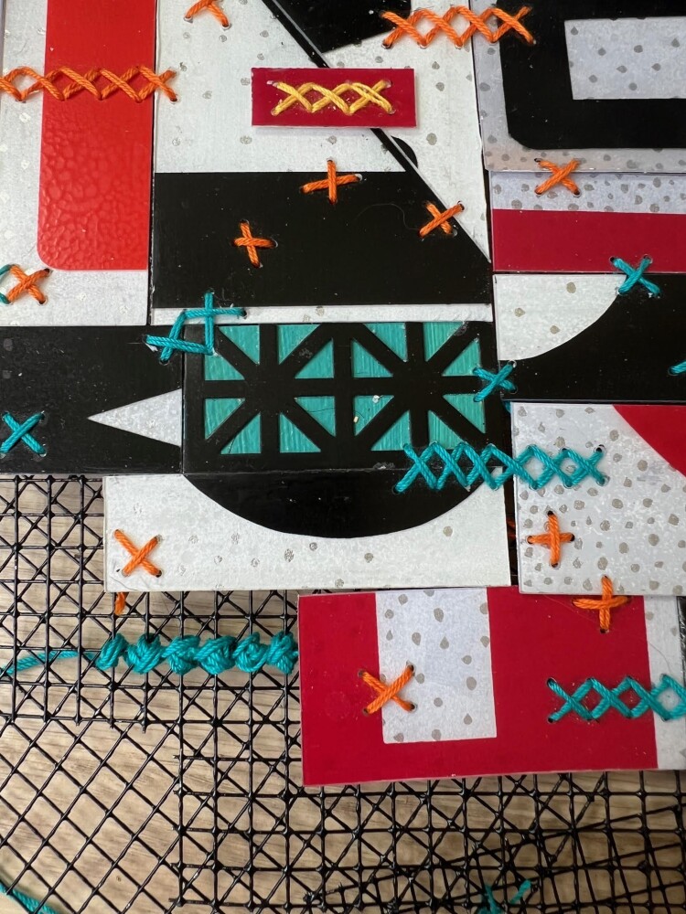 I bought two milk crates full of discarded marquee letters for twenty-five dollars. I was desperate to have them, although at the time, I wasn’t sure why. Now, after having cut them, drilled them, sewn them, laminated both metal and paper onto them, I have an idea or two.