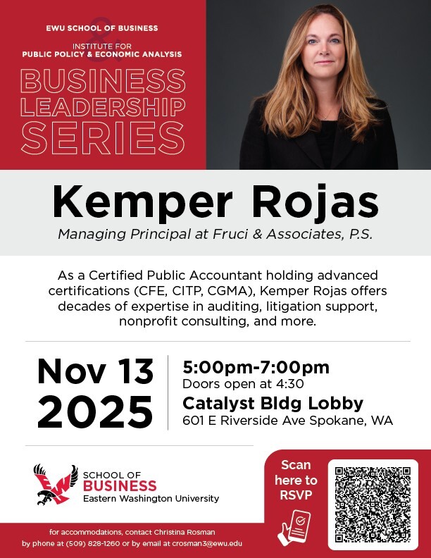 Welcome to the EWU Business School Speaker Series! Get ready to be inspired by industry leaders sharing their insights and experiences in person. This event is a fantastic opportunity to network, learn, and grow your knowledge in the business world. Join us in the Catalyst Building lobby for an engaging and informative session that will leave you motivated and ready to take on new challenges.