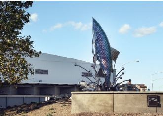 Dance of the Redband by local artist Ken Spiering, acts as an unofficial welcome to the City of Spokane. The kinetic steel sculpture celebrates the native and endangered Redband trout. Funded by the City of Spokane and the Public Facilities District, this piece was created as part of a capital project to improve the Division Street Triangle. Intended as a companion piece to a work commissioned for the Spokane Convention Center in the 1990s, it creates a strong visual connection between the two neighborhoods and reinforces the spirit of connectivity and collaboration that is a hallmark of The University District.