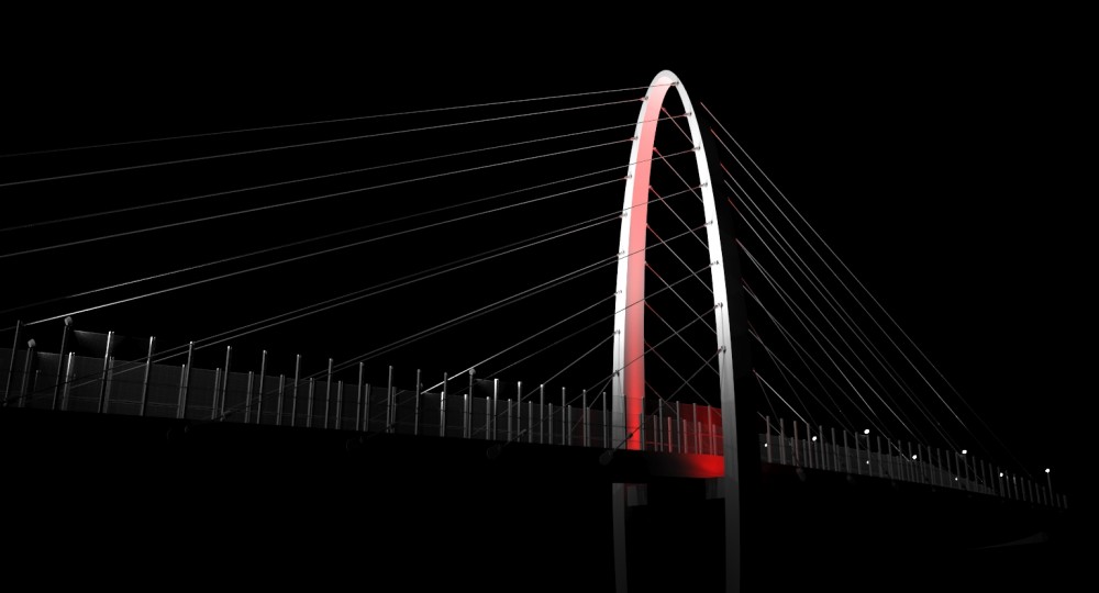 University District Gateway Bridge - Architectural Lighting Rendering - Color Lights